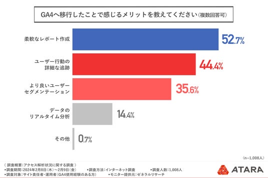 半数を超える人が「柔軟なレポート作成」をGA4移行のメリットとして感じている