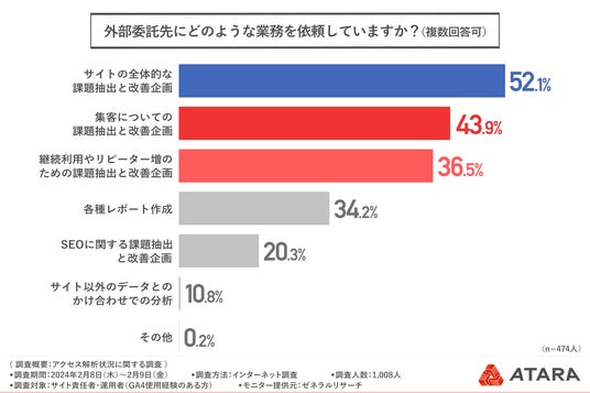 半数を超える人が「サイトの全体的な課題抽出と改善企画」を外部に委託している