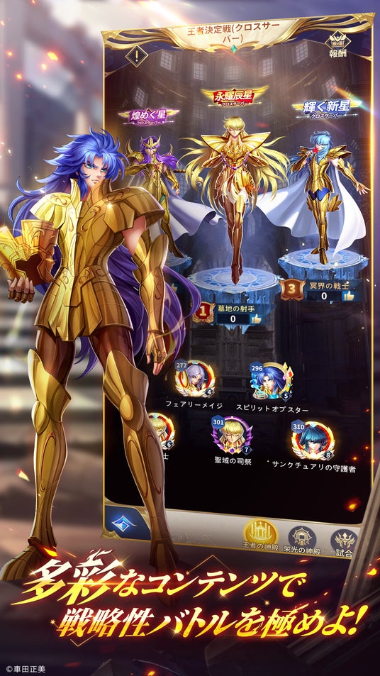『聖闘士星矢レジェンドオブジャスティス』では原作の正義、友情、希望に満ちた物語を追体験することができます。隙間時間で遊べる手軽さと、戦略の奥深さが本作の魅力です。最大5人の聖闘士を編成して戦うバトルでは、属性の選択やポジションの配置が戦局を左右します。自動バトルと手動操作が両方とも可能で、シンプルな操作で爽快感のあるアクションが体験できます。また、ログアウトしている状態でも経験値や育成素材を獲得し、キャラクターを強化出来るため、忙しい方でも気軽に遊べます。『聖闘士星矢 レジェンドオブジャスティス』ならではの『聖闘士星矢』をぜひご堪能下さい。