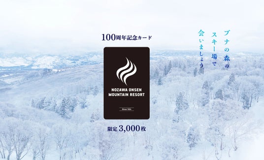 【野沢温泉スキー場 開業100周年記念カード】リフト券ICカード冬季1日券の引換券(6,800円相当)夏季ゴンドラ往復券の引換券(2,500円相当)村内の100周年記念カードのシールがあるお店での特典https://nozawa-emono.com/