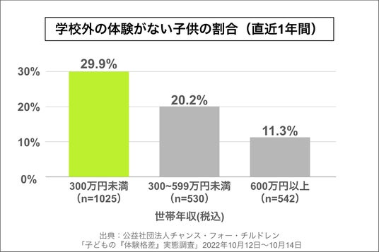 ※(1)公益社団法人チャンス・フォー・チルドレン「子どもの『体験格差』実態調査」2022年10月12日~10月14日
