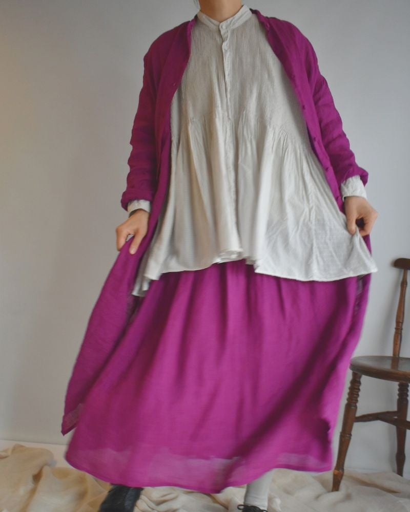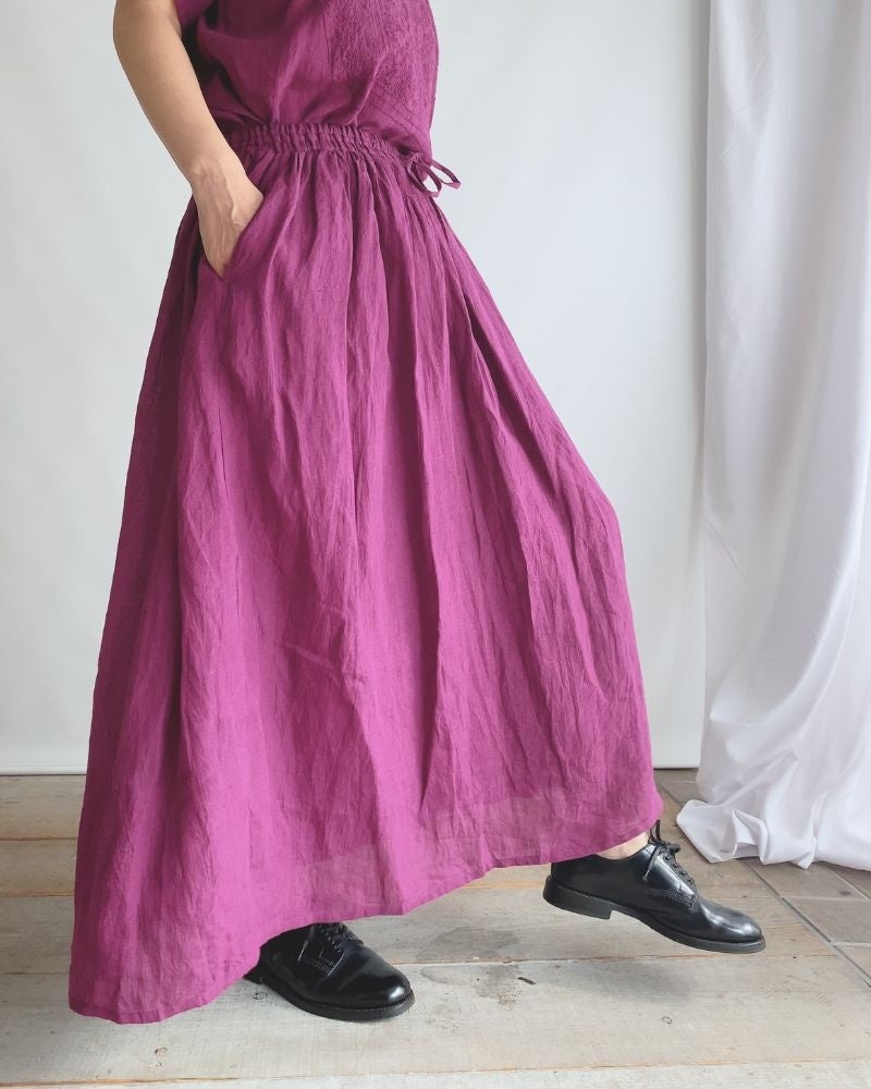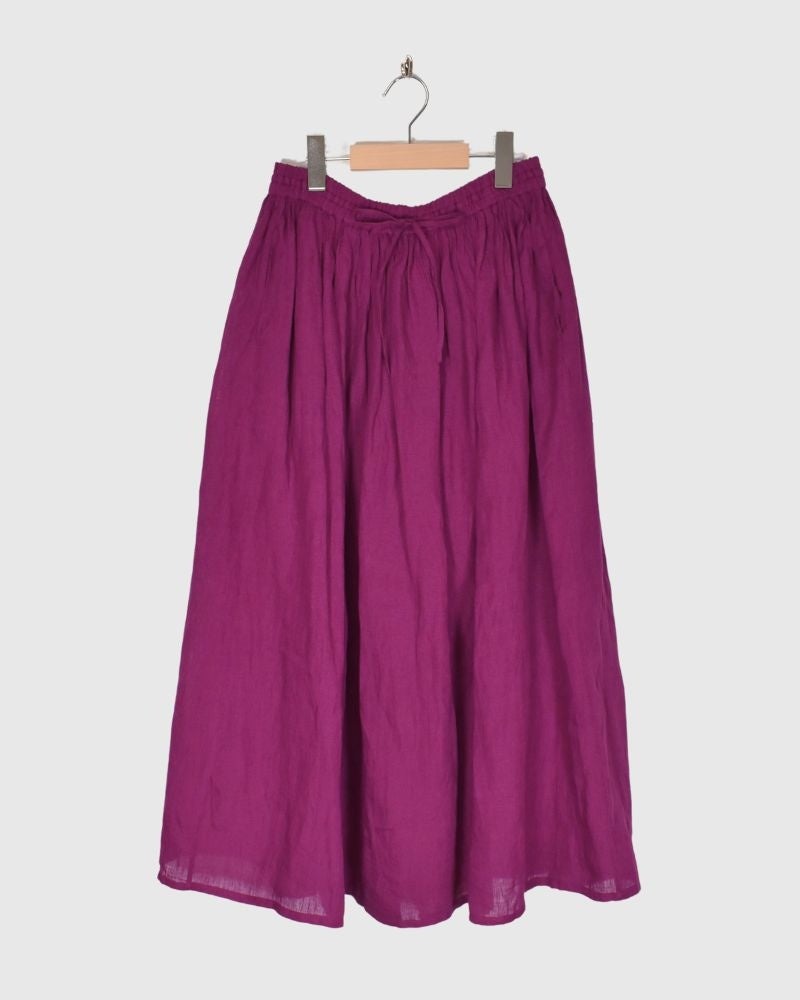 80'S POWER LOOM LINEN PLAIN GATHERED SKIRT。天然素材リネン100%。LINING は コットン100%です。