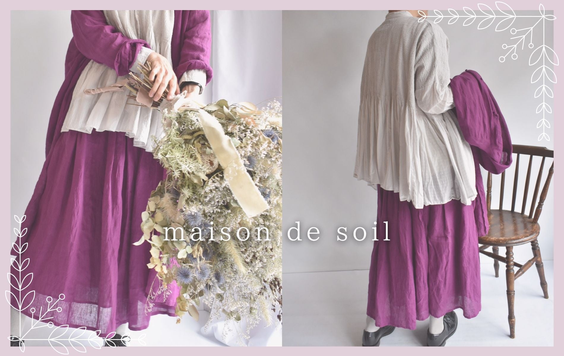 セレクトショップmiel(所在地:埼玉県狭山市)は2024年春を迎え、大人気アパレルブランド「maison de soil」から届いた2024年 SPRING and SUMMER COLLECTIONのスタイリングをご提案しています。maison de soilの2024年S/Sコレクションのテーマは"Clematis"です。さわやかな青紫色が初夏によく似合う名花をテーマとしています。