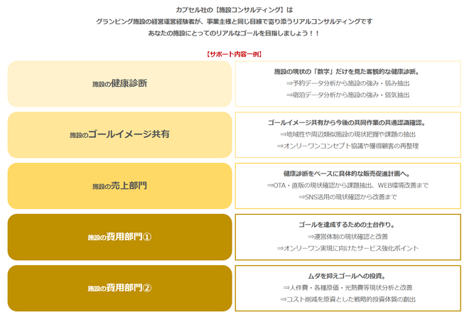 上記背景からカプセル社では、グランピング施設が宿泊事業であり「継続事業」であることを再認識し「オンリーワン施設サポート」サービスを提供開始することとなりました。