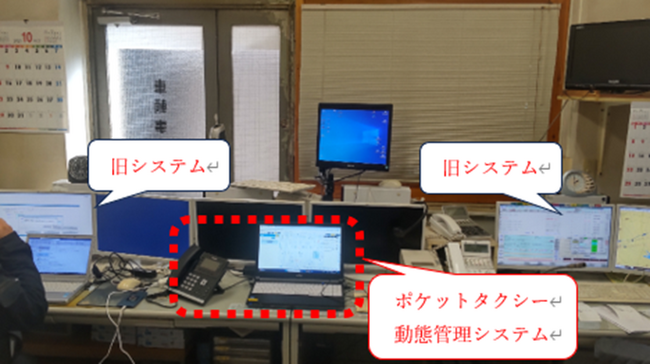 ※以前はPC2台、ディスプレイ4台だったが、ノートブックPC1台。1分に4回の配車効率。こぼれる顧客は代行サービスがバックアップ。