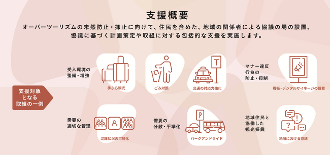 需要の分散・平準化、マナー違反行為の防止・抑制、地域住民と協働した観光振興の取組を対象とする