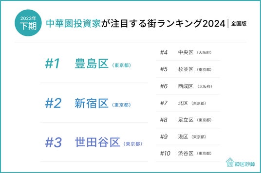 ~2023年の人気ランキング第1位は新宿区、2位は豊島区、3位は大阪市中央区~