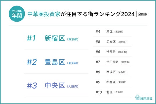 株式会社神居秒算(本社:東京都港区、代表取締役:趙 潔、以下「当社」)は、中華圏(中国、台湾、香港)最大級の日本不動産プラットフォーム(※1)「神居秒算」でお問い合わせがあった物件を都道府県・市区町村ごとに集計した「中華圏投資家が注目する街ランキング(全国版) 2024」を初めて実施、発表します。