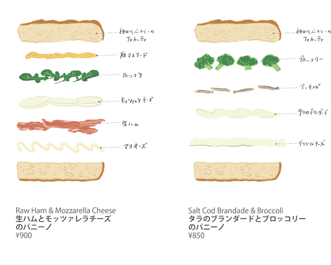 に加え、白味噌や水菜やしらすなど、日本らしい食材を生かした6種類のパニーノを提供します。