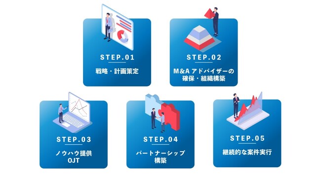 当社は実務に即したノウハウの提供とOJT体制に強みを持っており、これらを組み合わせることでM&Aビジネス立上げを支援いたします。