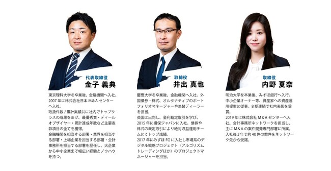 M&A仲介ビジネスを立ち上げることは、企業の非連続成長・利益の最大化・ブランディング・イノベーションの促進等、企業に様々なメリットをもたらします。しかしM&A仲介ビジネスは、法律や税務・ファイナンス・交渉力など多くのスキルを必要とするビジネスの総合格闘技と言われており、経験豊富な人材を自社で探すのは困難です。当社は業界トップクラスの人材・ネットワークを保有しており、そのリソースを、東証グロース企業の更なる成長や、顧客を多数保有する事業会社の取引先の後継者不在問題解決に使うことで、ビジネスインパクトの高いM&Aソリューションプラットフォームを構築していきたいと考えています。