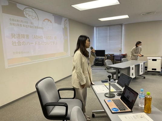 発達障害の理解を社会に広げる活動をしている合同会社mojo(本社:東京都板橋区、代表:渡辺すみれ子 岩切健一郎)は、2024年1月19日に和光市義会の議員の皆様に「発達障害の社会のハードルを学ぶ研修会」を開催しました。