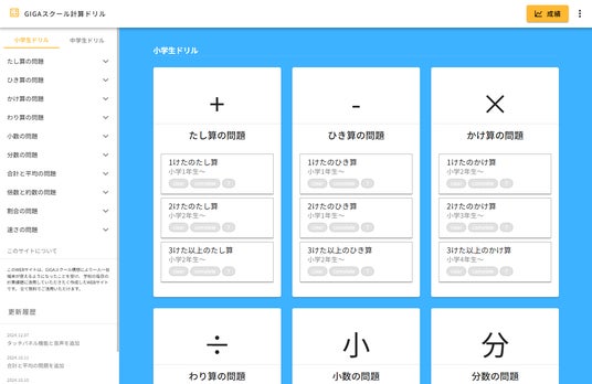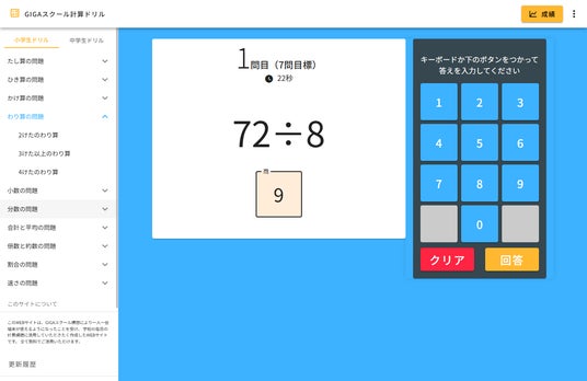 GIGAスクール計算ドリル( https://giga-drill.com/ 運営会社:株式会社山のむこう(山形県南陽市宮内3707-1)、代表取締役 大垣敬寛)は2024年12月、1か月のアクティブユーザー数が1万人を突破しました。さらに、学校でタブレット端末から簡単に入力できるようにしてほしいとの要望にお応えし、タブレットやスマホ端末でも簡単に入力することができるタッチパネル機能を2024年12月7日にリリースしました。