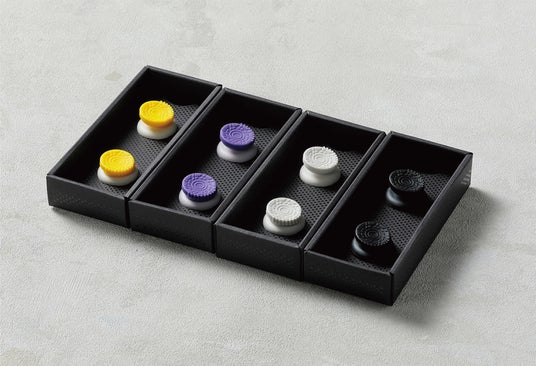 コントローラーのスティック部分に取り付け、スティック操作性を高める。表面が斜めになっていて凹形状のため、親指が気持ちよくフィットします。奇抜なパターン模様はデザイン性だけでなく、強力なグリップ力を発揮します。PS5,Switchプロコン、Xbox用コントローラーに対応。