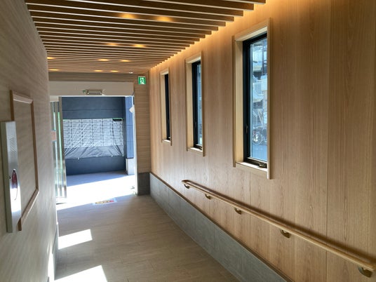当社は、2021年に東京都に初の木造マンションである「MOCXION INAGI(モクシオン稲城)」を完成させ、首都圏を中心にMOCXIONを展開してまいりました。本物件は、木造マンションMOCXIONの関西エリアで初の試みとなる学生マンションです。構造躯体に237.2t-CO2(※2)(スギの木470本相当)の炭素を貯蔵しており、脱炭素社会の実現にも貢献しています。さらに、本物件は、劣化対策等級、耐震等級の最高等級「3」、BELS評価の「ZEH-M Oriented」を取得することで、建物の安全性と快適性はそのままに一次エネルギー消費量を20%以上削減し、住む学生はもとより環境 にもやさしい木造マンションと言えます。そして、多くの学生に、安全で安心な居住空間を、循環型資材である「木」の特性と当社独自の技術を用いて実現しています。物件内部のエントランスには、スロープなどのバリアフリー設計を施しており、車椅子の利用なども可能にすることで幅広い学生に配慮した設計としています。