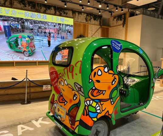 地元に提供してきたキャラクターがデザインされたEVカーや着ぐるみなどの展示など