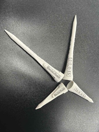 長さ・太さ等に変更を加え利便性にもこだわって改良しました。例えば高さ目盛の表示は印刷で表現すると度重なるショットで線や数字が消える恐れがある為、凹凸で表現していたり、ロゴも消えると汚く見えることから消えにくいレーザー刻印を採用しています。ゴルフティーの機能としては関係のないところまでこだわって制作しました。