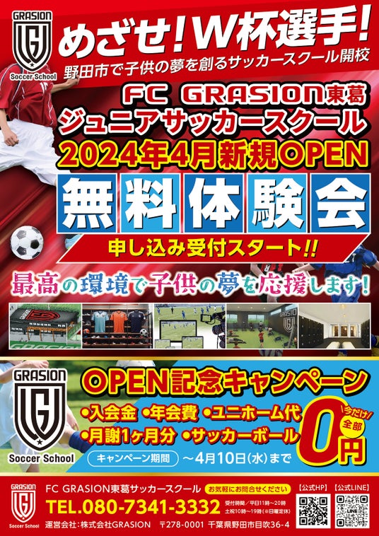 【"FC GRASION 東葛" ジュニアサッカースクール開校】2024年4月2日(火)より、