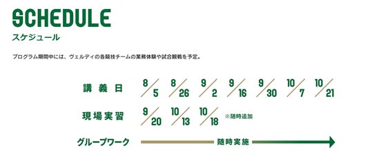 6期を迎える今期は「スポーツビジネスで社会全体を、一歩前へ前進させる人材を育成する」を育成コンセプトとし、あらゆるスポーツビジネスの最前線で活躍されている方の講義を通して、ビジネスのノウハウやスポーツマンシップについて考えます。また味の素スタジアムや味の素フィールド西ヶ丘などの東京ヴェルディが関わる競技の現場に足を運び、観察・インタビュー・リサーチ・企画・運営など実践的な活動を行い、スポーツビジネスに触れるだけでなく、その先の企画運営などの実践についても主体性をもって取り組んでいただくことを予定しております。