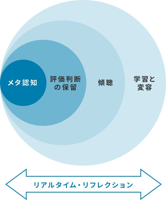 メタ認知、評価判断の保留、傾聴、学習と変容、リアルタイム・リフレクションです。