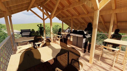見晴らしのいい2階のダイニングテラス。BBQディナーと朝食をお楽しみください。