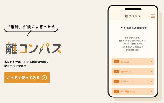 離婚を考える方、夫婦の問題に悩んでいる方のために、必要な知識(当事者が得られる支援、サポート制度、親としてこどものために知っておくべき知識など)を、出版事業に基づいた確かな情報として、しかも手軽に受け取ってもらえる、新しい専門情報提供サービス、「離コンパス」を創設しました。