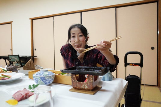 ご利用者さまにとって、生まれて初めてのご旅行。「これ食べて!おいしいよ」と、一口お母さまに食べていただこうとされているお写真です。