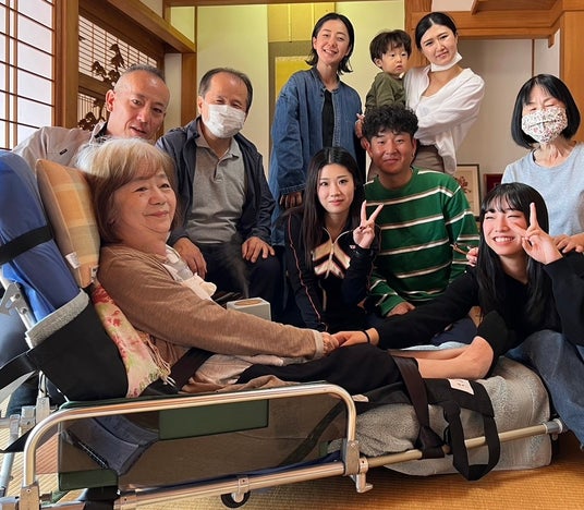 ご家族さまそろっての団欒のひととき。お孫さま、ひ孫さまに囲まれて、笑顔があふれて素敵なお時間を過ごされました。