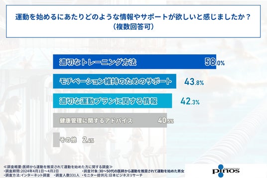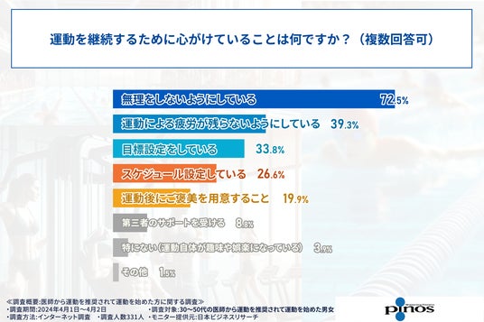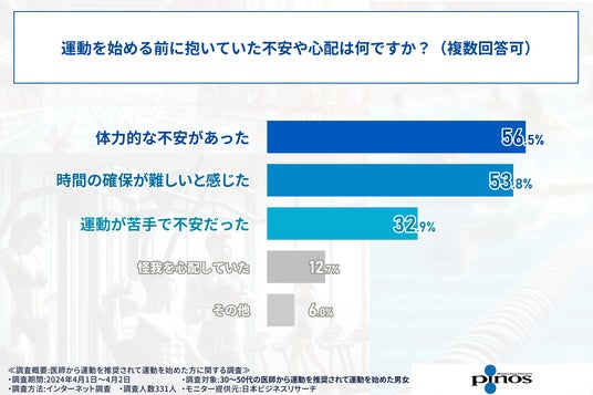 リラクゼーションフィットネスクラブを運営する株式会社ピノス(本社:京都府京都市)は、医師から運動を推奨されて運動を始めた30~50代の方331人を対象に、運動習慣に関する調査を実施いたしました。
