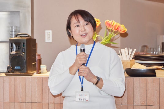 イベントの最後には、神奈川県立保健福祉大学の特別研究員で、アプリ監修を担当した一般社団法人日本スポーツ栄養協会 管理栄養士の中西朋子さんから好き嫌いせず食べることの大切さについてお話がありました。「今日食べた料理の中にも色々な食材が入っています。好き嫌いしないでと言われるのは、それぞれの食材に体にすごく大切な役割を持つ栄養素がたくさん入っているからです。もし嫌いな食べ物があっても、まずは一口食べることをやってみてください。いっぱい”もぐみん”を集めて、楽しく食事をして、元気な体を作ってほしいと思います。」といった言葉に、子どもだけではなく保護者も思わず頷いていました。子どもたちは、食育ゲームアプリ「もぐもぐタウン」での体験と合わせ、食や栄養について考えることの大切さを感じ取っている様子でした。