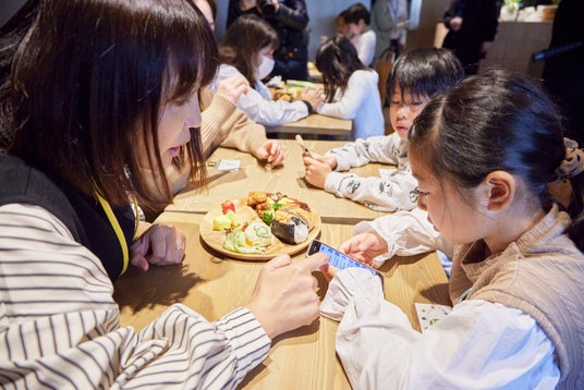 本アプリ公開にあたり、前日の2月18日(日)に小学生を招待し、ビュッフェ形式の食事を撮影しながら、食材ごとの栄養ポイントや豆知識について楽しく学ぶ「もぐもぐタウン」アプリ体験会を開催いたしました。