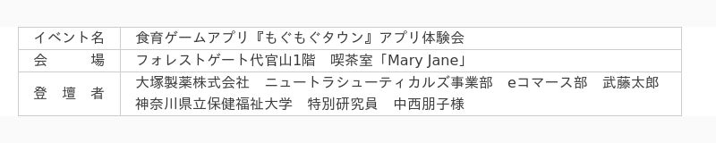 大塚製薬 ニュートラシューティカルズ事業部 eコマース部 武藤 太郎親子で食のコミュニケーションがなかなか取れていないと感じているなど食育に関する親世代の悩みがある中、お子さんが主体的に楽しみながら食や栄養の知識を学んでいただけるアプリを目指して開発をしました。例えば「まだ集められてない”もぐみん”がいるから食べてみたい」という会話をしたり、一緒にスーパーに行って食材を見て、今まで気に留めていなかった食材について話したり、そういった食育に関するコミュニケーションに繋がればと考えています。今日の体験会では、純粋に楽しんでいただいている子どもたちの様子を見ることができて非常に嬉しかったです。これからも継続的に遊んでもらって食と栄養に関する知識を増やしてもらえるといいなと思います。
