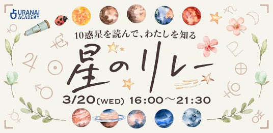 オンライン占いスクール「占いアカデミー」を運営する、株式会社LuckOut(本社:東京都新宿区、代表取締役:溝上篤史)は、2024年3月20日(水)春分の日に、10惑星を通して「わたし」のことが知れるイベント「星のリレー 2024」をオンラインで開催いたします。