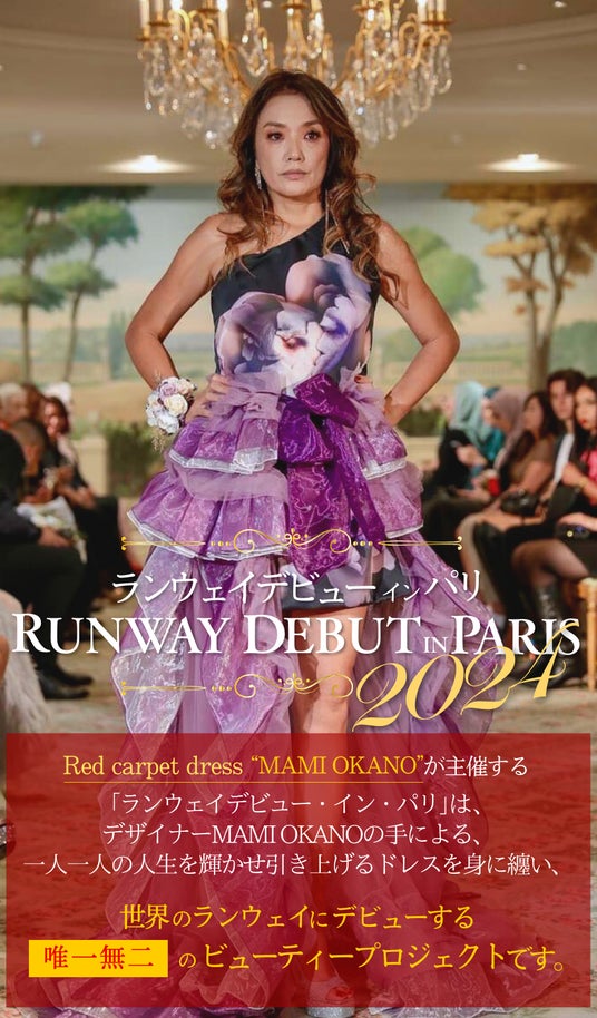 ドレスデザイナーMAMI OKANOは世界の舞台に挑戦する日本人のために、9月28日開催パリシティファッションウィークで、MAMIがデザインしたドレスを着てランウェイデビューする女性をプロデュースする
