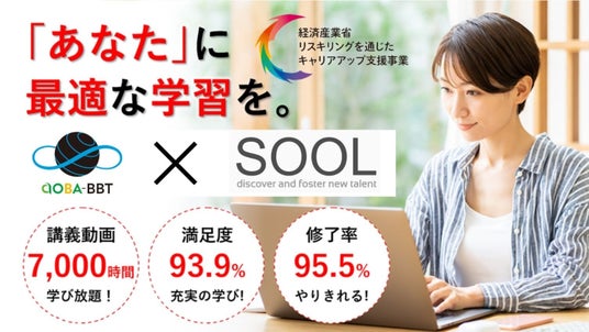 株式会社SOOL(本社: 東京都中央区、代表取締役: 深澤 祐馬)は、株式会社Aoba-BBTと提携し、「BBTパーソナライズ×SOOL 転職支援サービス」の提供を開始いたします。このサービスでは、個々のキャリア目標に合わせパーソナライズされたサポートを提供します。経済産業省の「リスキリングを通じたキャリアアップ支援事業」にも採択され、期間内に転職を完了した利用者には、「BBTパーソナライズ」の利用額の半額を補助する特典が付与されます。この提携により、SOOLはキャリア支援の領域でさらに多様なサービスを提供することで、個々のニーズに合わせた幅広いキャリアパス構築を支援します。