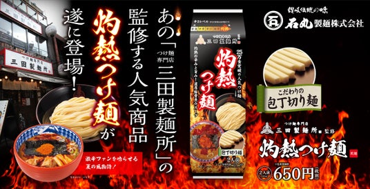 石丸製麺株式会社(本社:香川県高松市、代表取締役社長 石丸 芳樹 )は、株式会社エムピーキッチン様(本社:東京都渋谷区、代表取締役:村上竹彦)が運営する『つけ麺専門店 三田製麺所』の監修商品『三田製麺所監修 灼熱つけ麺』を2024年3月に発売しました。