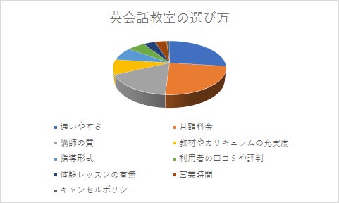 大人向け英会話教室の選び方についての回答結果を箇条書きにしました。