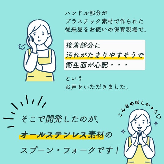 そこで開発されたのが、オールステンレス素材のスプーンとフォーク。