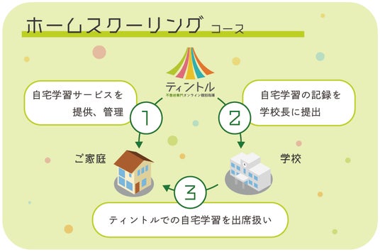 ホームスクーリングコースとティントルのオンライン個別指導、担当スタッフとの面談のログイン情報等、学習実績を在籍中の学校に提出することで、出席扱いにすることが可能です。※