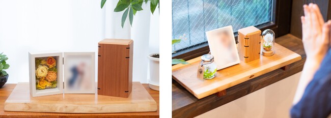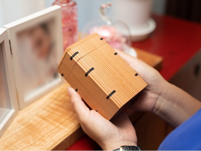 自社で企画製造する供養木箱「木霊」は、パウダー状に加工した遺骨全量をコンパクトに納めて自宅で供養をすることができるので、お墓を必要としません。