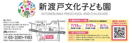 新渡戸文化子ども園では、7月13日開催の1-5歳児向け説明会から、本件の詳細説明をスタートします。説明会へのご参加はHPの以下のリンクより申込ください。
