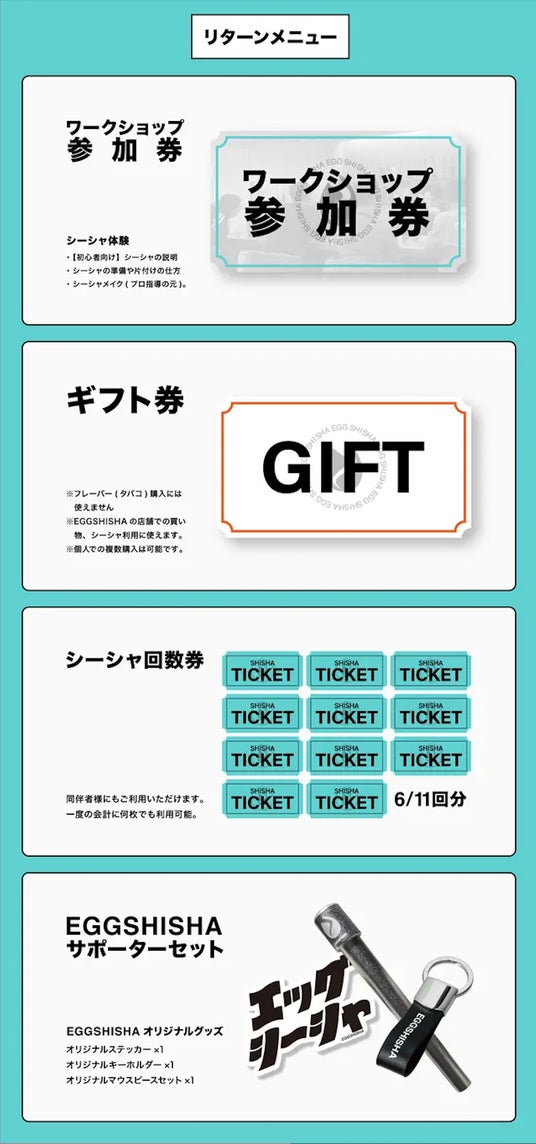 マクアケだけの、豪華リターンでEGGSHISHA STOREを体験しませんか?