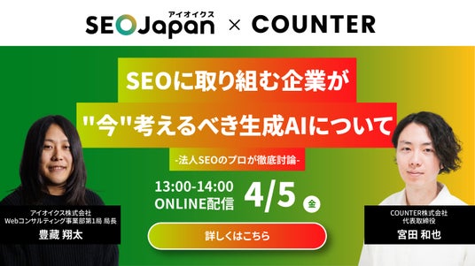 デジタルマーケティング支援事業を展開するCOUNTER株式会社(本社:埼玉県越谷市、代表取締役:宮田 和也)は、アイオイクス株式会社と無料ウェビナーを共同開催します。