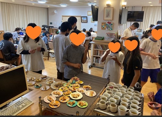 この日はカフェに入りきらず勉強室で『おやつタイム』