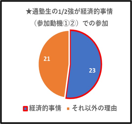 「経済的事情での参加」は全体の半分強、6割弱を占める。