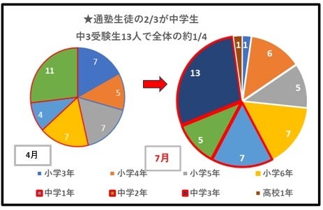 全体の半数強が中学生。1/4弱は中3の受験生。