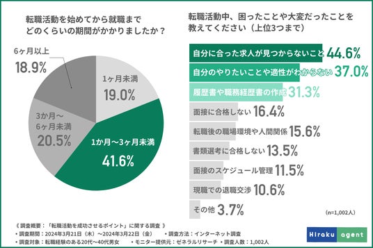 株式会社Hiraku agent(本社所在地:東京都品川区、代表取締役:加藤 啓介)は、転職経験のある20代~40代男女1,002名を対象に、「転職活動を成功させるポイント」に関する調査を実施しました。自分のやりたいことを仕事にしたい、新しい業界にチャレンジしたいと「転職」を前向きに捉える方が増えているという話があります。