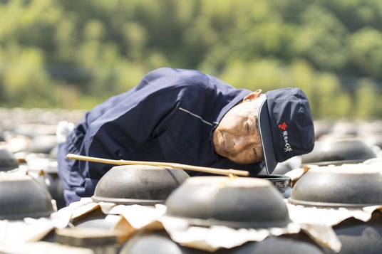 一般的な米酢は、まず米を麹や糖化酵素によって糖化し、酵母菌を加えて酒を造ります。そして酒に酢酸菌を加えて酢を造っていますが、坂元のくろずは発酵から熟成までが1つの壺の中で進む、世界でも珍しい製法です。