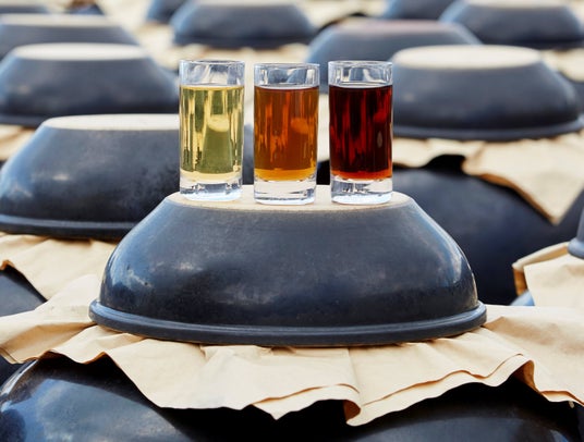 一般のお酢より、色が濃く壺の中で熟成させるほど色が濃くなるという、壺づくりのお酢の特徴から名づけられました。