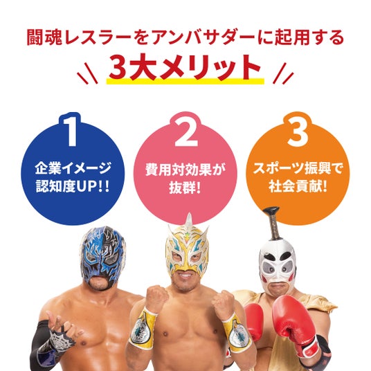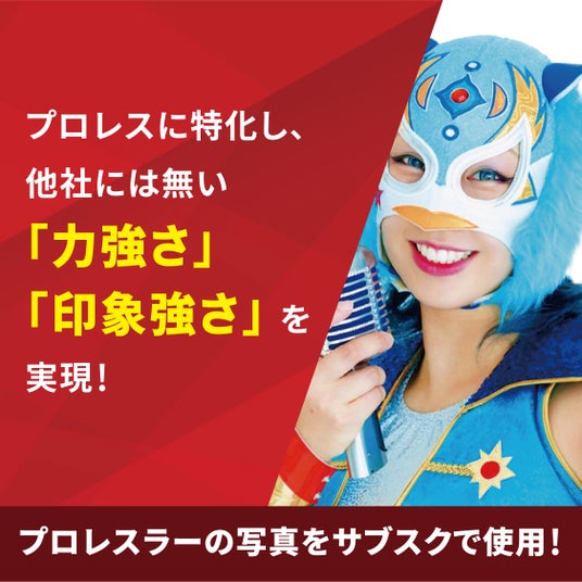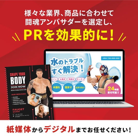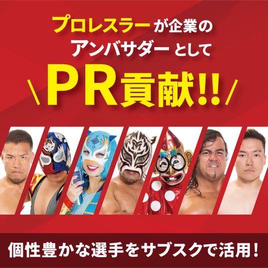 本サービスは、個性豊かな登録プロレスラーがアンバサダーとして企業や店舗のPRをお手伝いさせていただき、他社には無いプロレスに特化した『力強さ』『印象強さ』などを実現いたします。